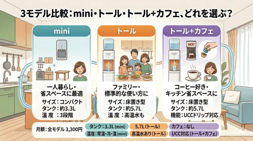 3モデル比較:mini・トール・トール+カフェ、どれを選ぶ?