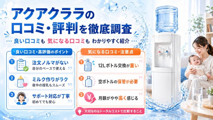 実際にアクアクララを利用している方の声を、良い口コミ・気になる口コミの両面から紹介します。