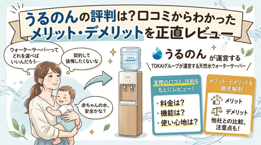 「ウォーターサーバーを使ってみたいけど、どれを選べばいいかわからない」「うるのんって実際どうなの?」と迷っていませんか。 ウォーターサーバーは毎日の生活に直結するものだからこそ、契約してから後悔したくないですよね。特に赤ちゃんがいるご家庭...