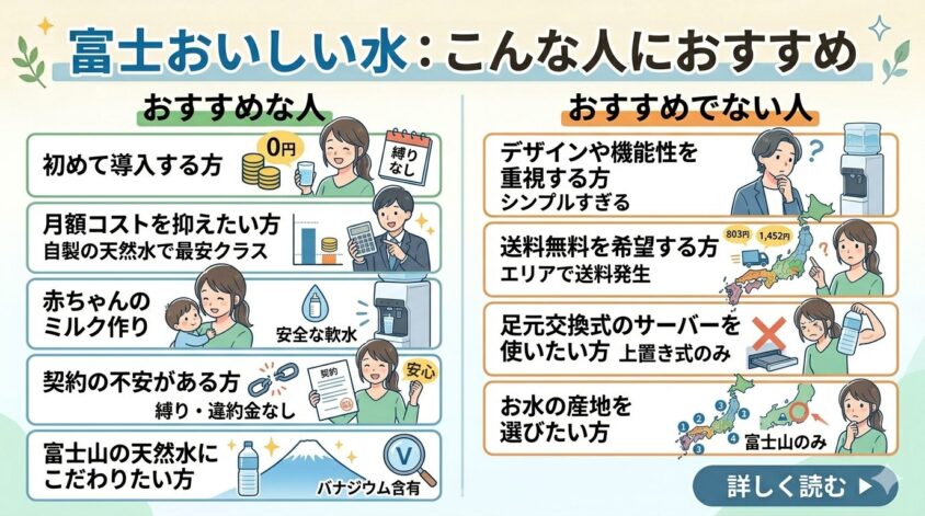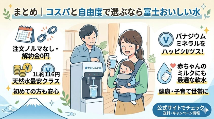 まとめ|コスパと自由度で選ぶなら富士おいしい水