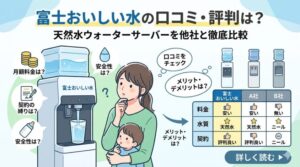 初めてウォーターサーバーを検討されている方や、赤ちゃんのいるご家庭で安心できる水を探している方には、検討する価値のあるサービスといえます。天然水の鮮度や産地へのこだわりは、毎日飲む水だからこそ実感できるメリットです。気になる方は、まず公式サイトで最新の料金やキャンペーン情報を確認してみてください。