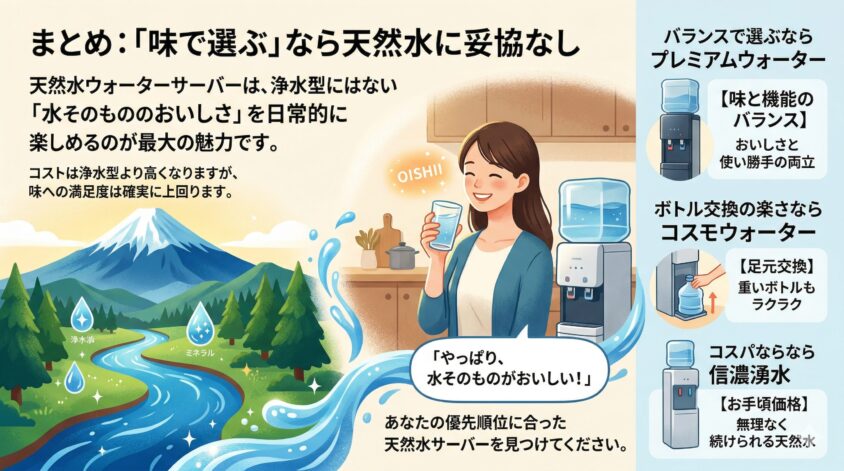 まとめ:「味で選ぶ」なら天然水に妥協なし