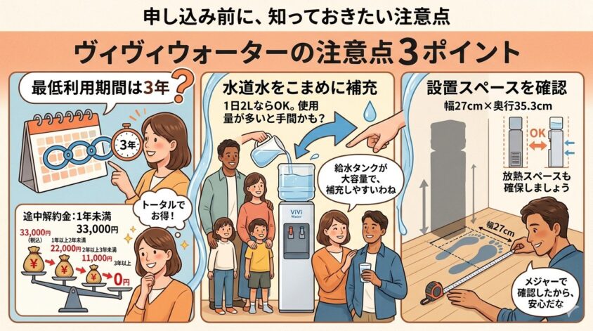 メリットの多いヴィヴィウォーターですが、申し込み前にいくつか押さえておきたいポイントがあります。